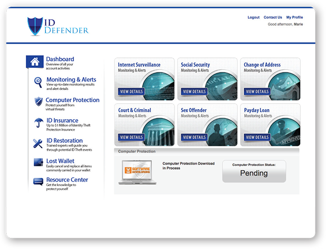 Defender Plus leverages cutting-edge technology, monitoring thousands of data sources to alert you of any potentially fraudulent activity associated with your personal information. We have developed a 360-degree approach to Identity Theft Protection – Protection, Detection, Restoration – to give you the most complete coverage available.